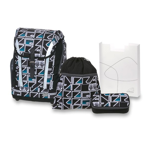 * anatomicky tvarovaná, výškově nastavitelná záda s odvětráváním, * polstrované, výškově nastavitelné anatomicky tvarované popruhy s reflexními prvky, * hrudní a polstrovaný bederní popruh, * hlavní komora na zip s flexibilní přepážkou a dalším funkčním členěním, * přední kapsa na zip s izolací, * 2 boční kapsy s uzavíráním na zip, * 1 boční kapsa s držákem na lahev zabraňující jejímu vypadnutí, * stabilní, zpevněné, voděodolné a snadno omyvatelné dno, * kvalitní uzavírání na zámek s patentovaným magnetickým mechanismem Snap Push, * reflexní prvky, * voděodolný materiál, , SÁČEK NA CVIČKY s přední kapsou na zip, uzavírání na šňůrku. Šňůrka je provléknuta i spodními rohy sáčku, takže při stažení horní části mohou šňůrky na bocích sloužit, jako popruhy a sáček je možné nosit jako batůžek. Rozměr 32 x 39 cm., , PENÁL na psací potřeby s uzavíráním na zip. Na horní klopě kapsa s uzavíráním na zip a dalšími dvěma kapsičkami. Rozložitelná prostřední klopa s 20 poutky, uzavírání na suchý, zip. Rozměr 21 × 10 × 6 cm. Penál je dodáván prázdný. Vybavit ho můžete psacími psacími potřebami nebo pastelkami a fixami.