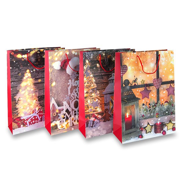 Dárková papírová taška v atraktivních vánočních motivech. Mix 4 motivů.