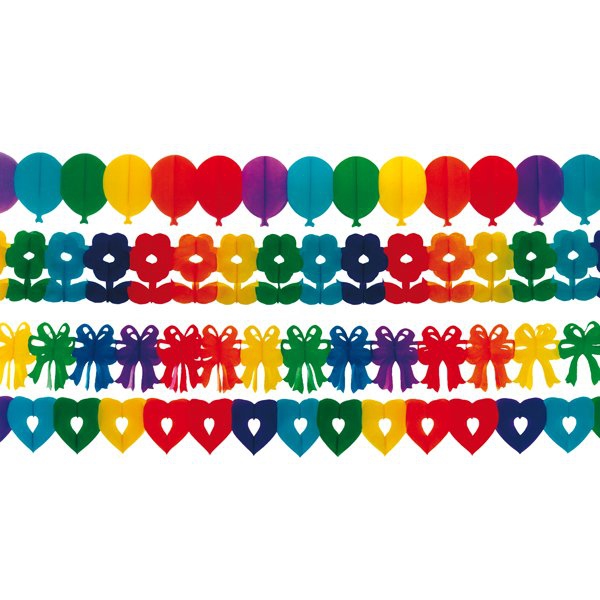 Barevná papírová girlanda s různými vzory. 20 cm x 4 m. Mix 4 motivů.