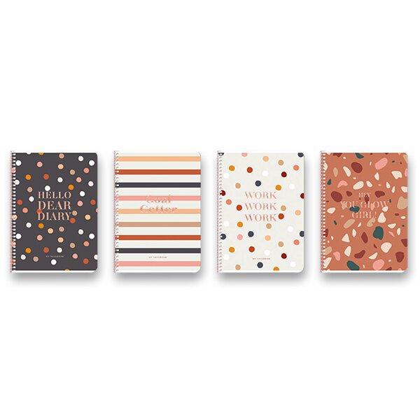 Kroužkový blok s horní kovovou spirálou. Čtverečkovaný, formát A5, 50 listů. Mix 3 motivů.