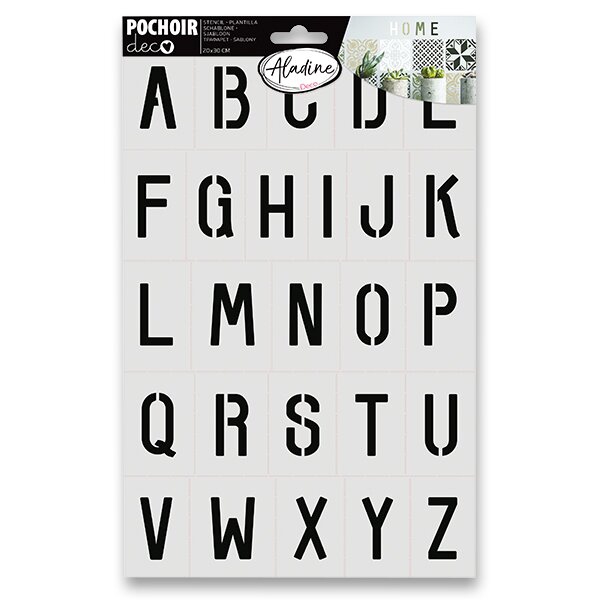 Plastová šablona AladinE na blistru je určená k dekoraci textilních i papírových projektů. Vzor se tupuje na textilii klasickou hustou textilní barvou nebo se dekoruje na papír pomocí aplikátoru a rychleschnoucích inkoustů nebo inkoustů ve spreji. Po použití šablonu ihned dobře umyjte vlažnou vodou a osušte.