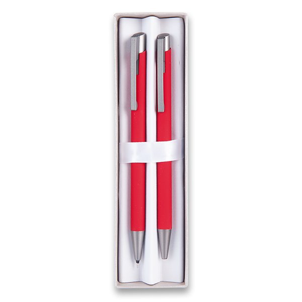 Souprava kuličková tužka a mechanická tužka. Dodáváno v plastové krabičce. Kuličková tužka stiskací mechanismus šíře hrotu 1 mm, šíře stopy 0,5 mm velkoobsahová náplň modré barvy Mechanická tužka: tuha HB o síle 0,5 mm, vyměnitelná pryž stiskací mechanismus dvoustupňový systém vysouvání tuhy - nejprve se vysouvá vodicí trubička, která chrání tuhu před zlomením, následně samotná tuha vodicí trubička i tuha jsou poté zasunuty zpět, aby nedošlo k jejich poškození