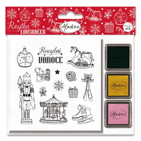 Razítka vyloupněte z pěnové desky, po použití je můžete opět vrátit a snadno uskladnit. Vkusný francouzský design dodá šarm vánočním projektům z papíru, kartonu, ale i textilu,, polymerů, keramiky a jiných hmot., BALENÍ OBSAHUJE 14 RAZÍTEK S HLUBOKOU TEXTUROU., Kreativní razítka AladinE jsou výbornými pomocníky nejen na papír, ale i pro dekorace na textil, dřevo, polymer či modelovací hmotu. Prohlédněte si je >>
