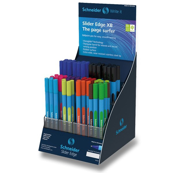 Kuličkové pero Schneider Haptify s trojhranným pogumovaným úchopem. Stiskací mechanismus. Moderní design a atraktivní barvy. Ve 3 barevných provedeních. Modrý inkoust. Vhodné ke psaní na dokumenty. Kompatibilní i s dalšími náplněmi Schneider. Hrot o šíři 1 mm.