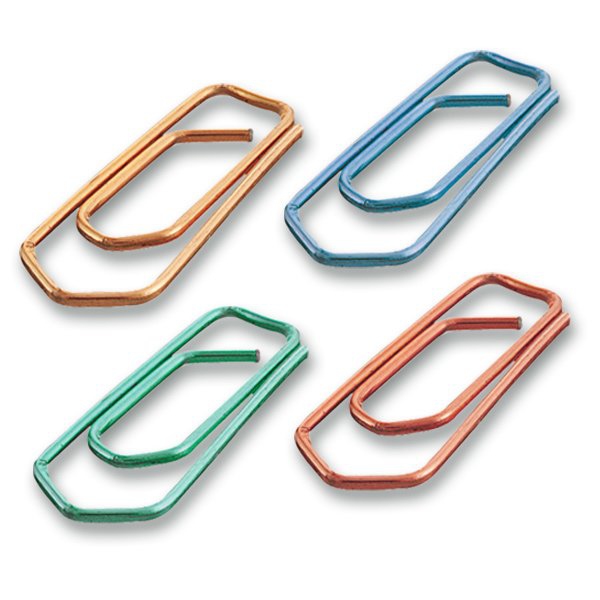 Kvalitní kancelářské sponky. Lakovaná ocel. 100 ks v krabičce. Mix barev.