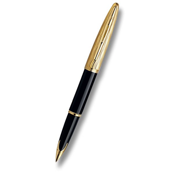 Plnicí pero Waterman Expert Reflections of Paris SE DLX Black GT s černě lakovaným mosazným tělem. Mosazné víčko s vlnkovou reliéfní rytinou vyvedenou leptáním a pokovené palladiem. V kombinaci s pozlacenými doplňky. Hrot z ušlechtilé nerezové oceli pokovený zlatem.
